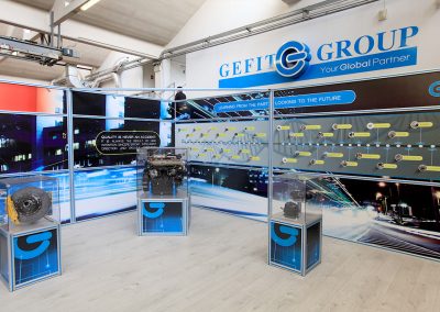 Sono stati realizzati interventi anche all’interno degli stabilimenti GEFIT, al fine di rendere più gradevole lo spazio per i lavoratori e gli ospiti, creando anche una zona espositiva per i clienti in visita allo stabilimento, in cui presentare i lavori migliori realizzati.