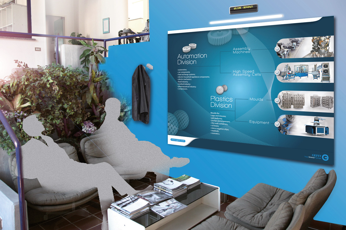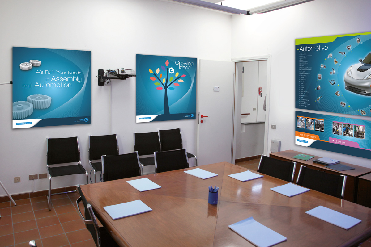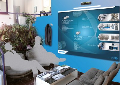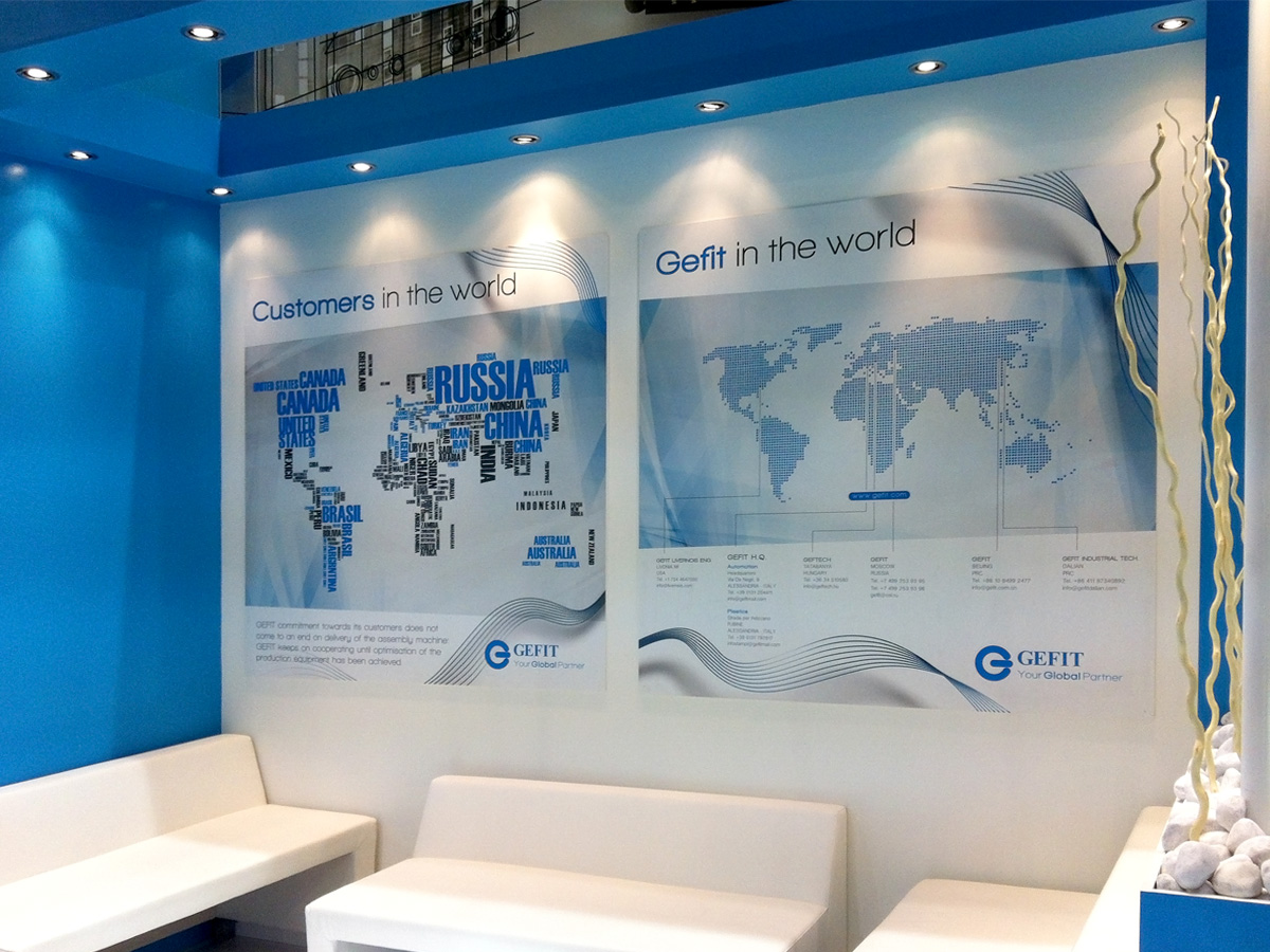 Sono stati realizzati vari pannelli per rinfrescare la sede ed informare i clienti in visita delle qualità di GEFIT e dei prodotti realizzati.