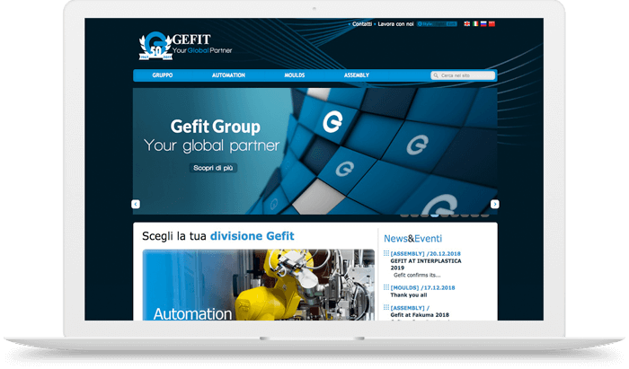 Per rinforzare la presenza sul web, è stato completamente rifatto il sito web gefit.com, per rendere fruibili tutte le informazioni sul business dell’azienda, scaricare le brochure in formato digitale e ricevere nuovi contatti da tutto il mondo. Il sito, successivamente, è stato tradotto da traduttori specializzati e pubblicato anche in russo, inglese e cinese.