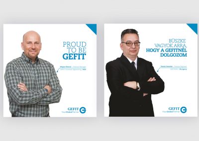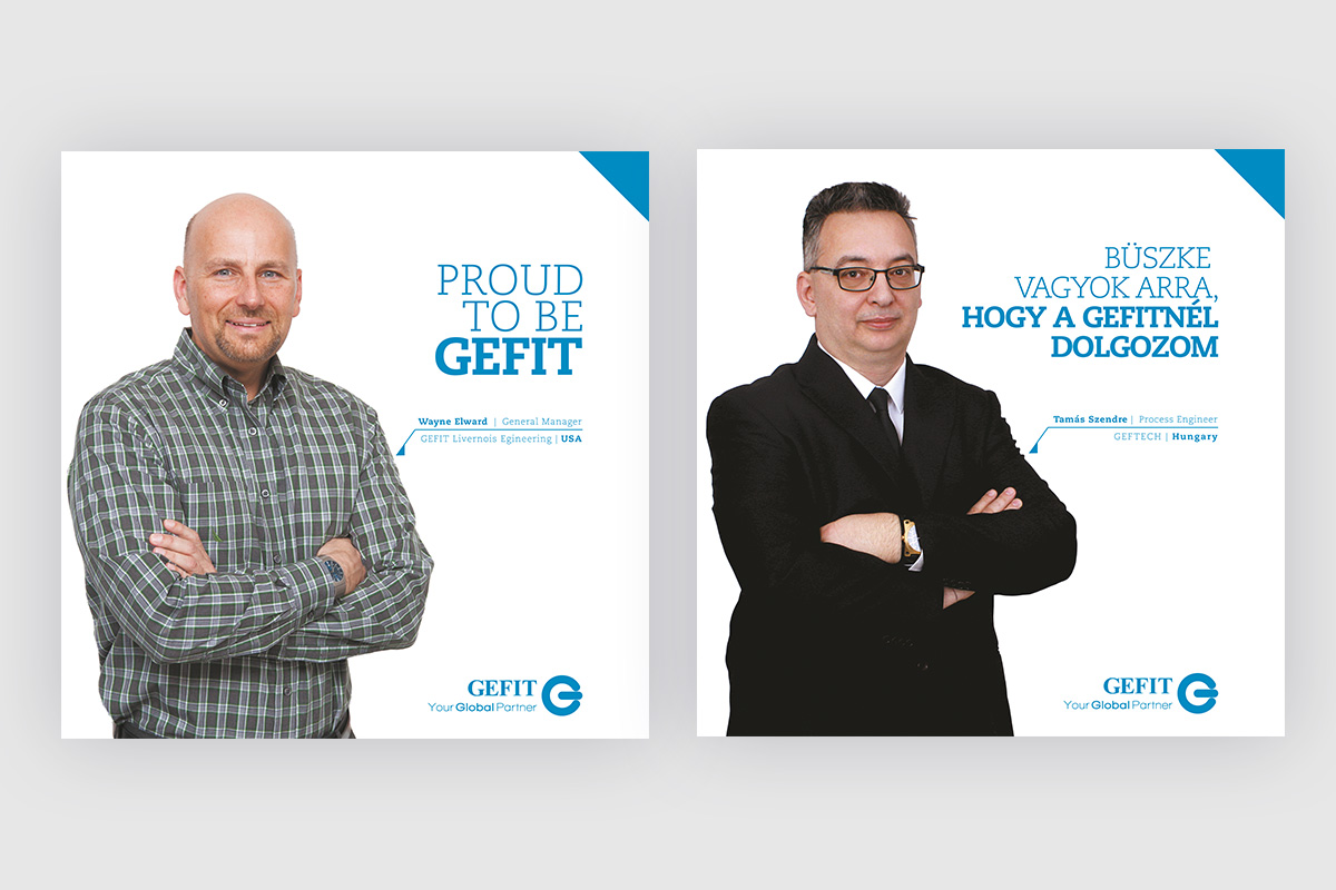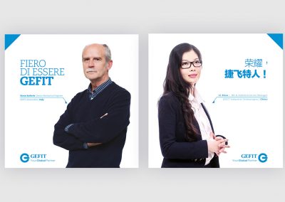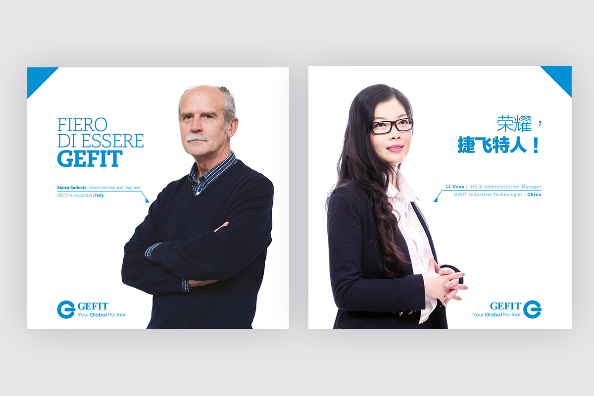 Sono stati realizzati inoltre altri pannelli che esprimessero l’orgoglio dei dipendenti di essere parte dell’azienda. E’ stato realizzato un servizio fotografico, “immortalando” alcuni lavoratori GEFIT di ogni stabilimento nel mondo, accostando la frase “Fiero di essere GEFIT” nella lingua di appartenenza di ogni lavoratore. I pannelli sono stati inseriti in varie aree di tutti gli stabilimenti GEFIT.