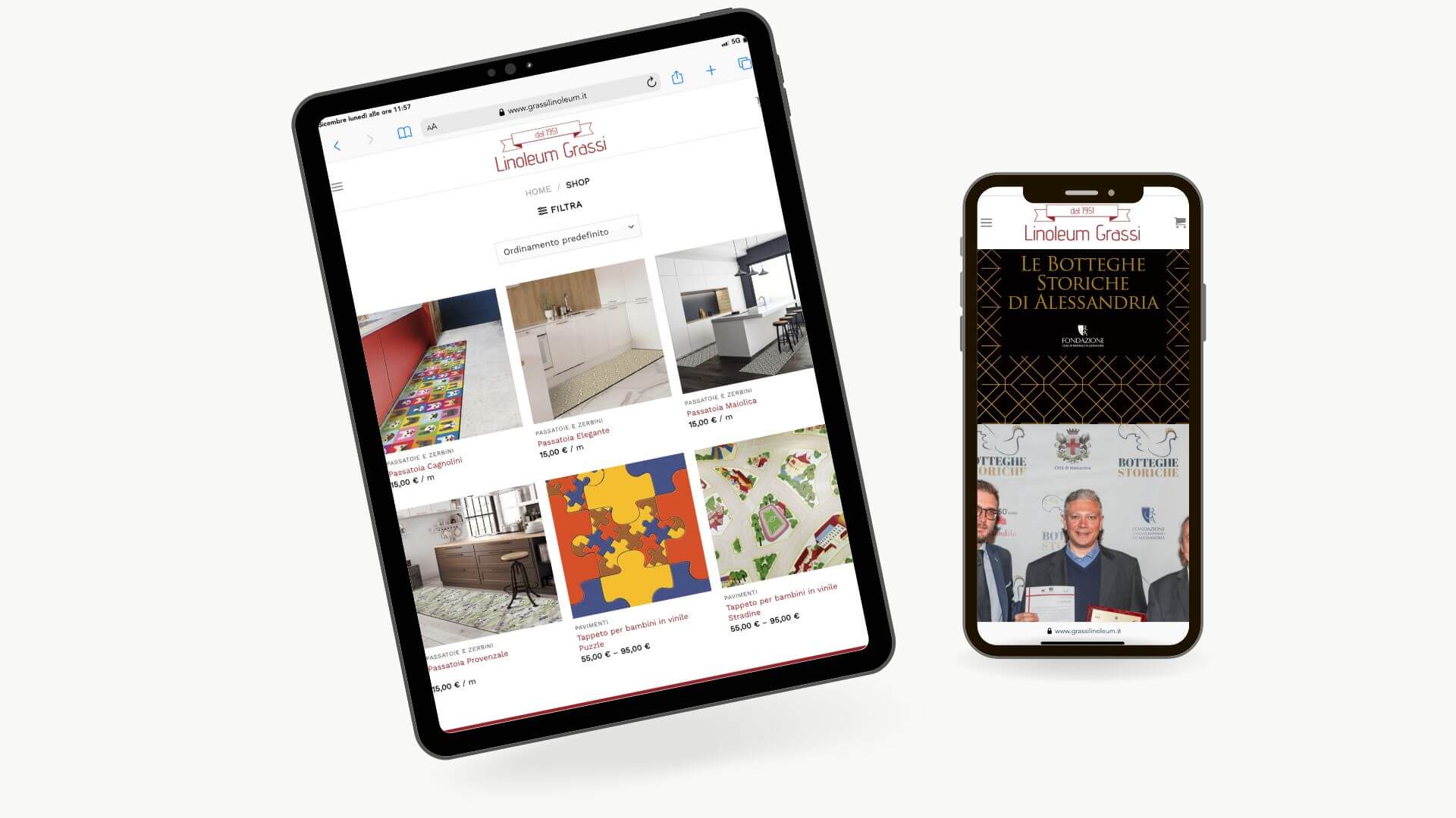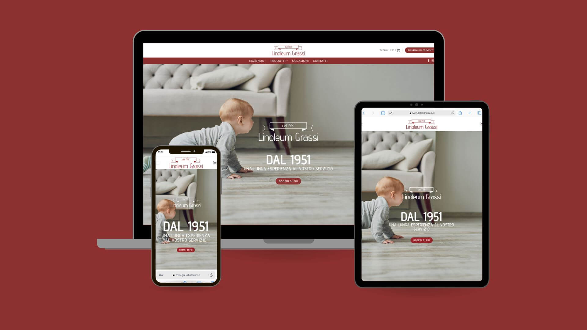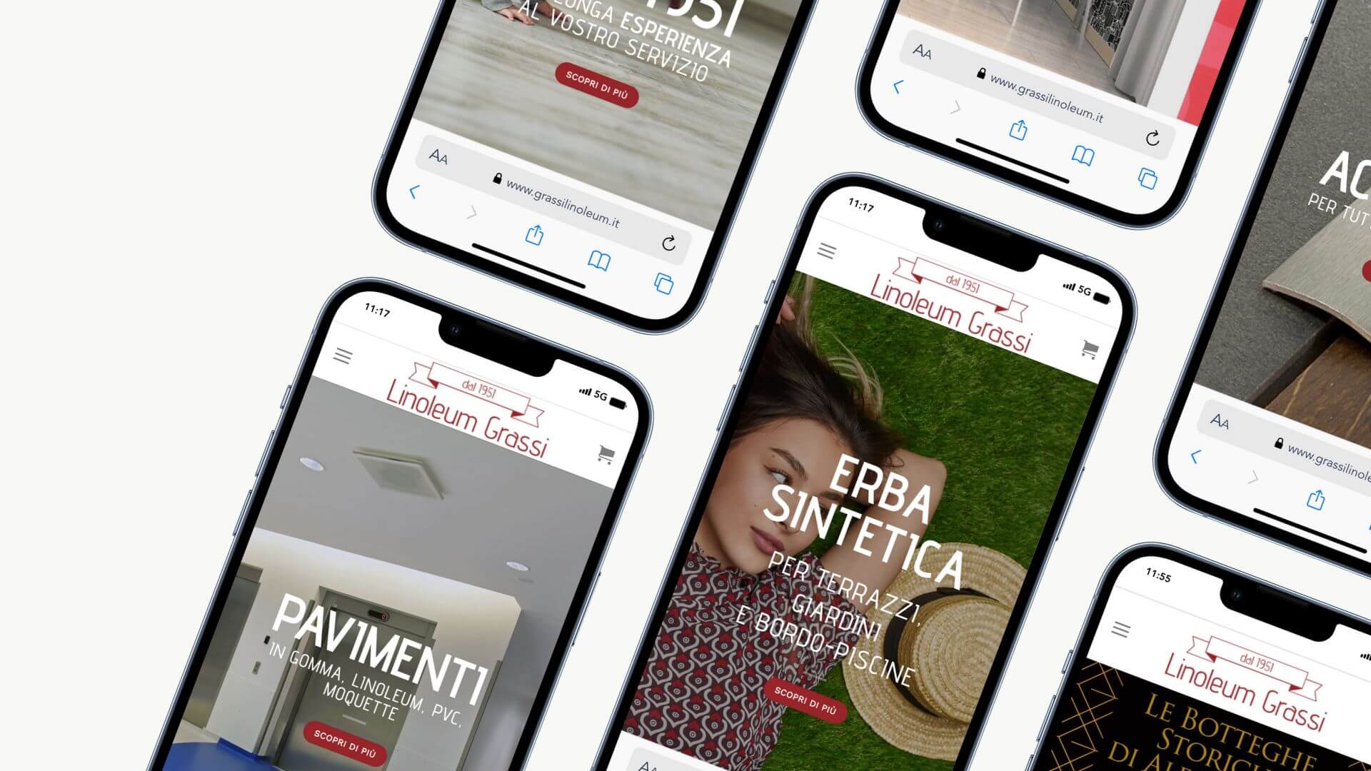 - Design Grafico: Sviluppo di un design visivo moderno che mantenesse elementi dell’identità visiva tradizionale di Grassi Linoleum.