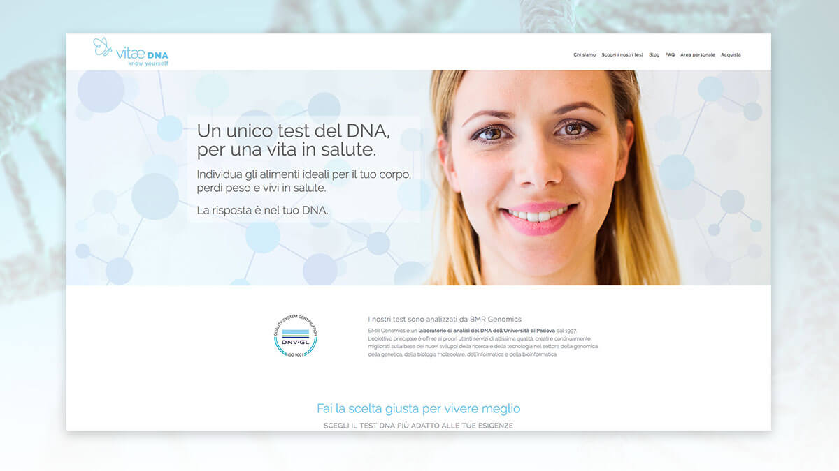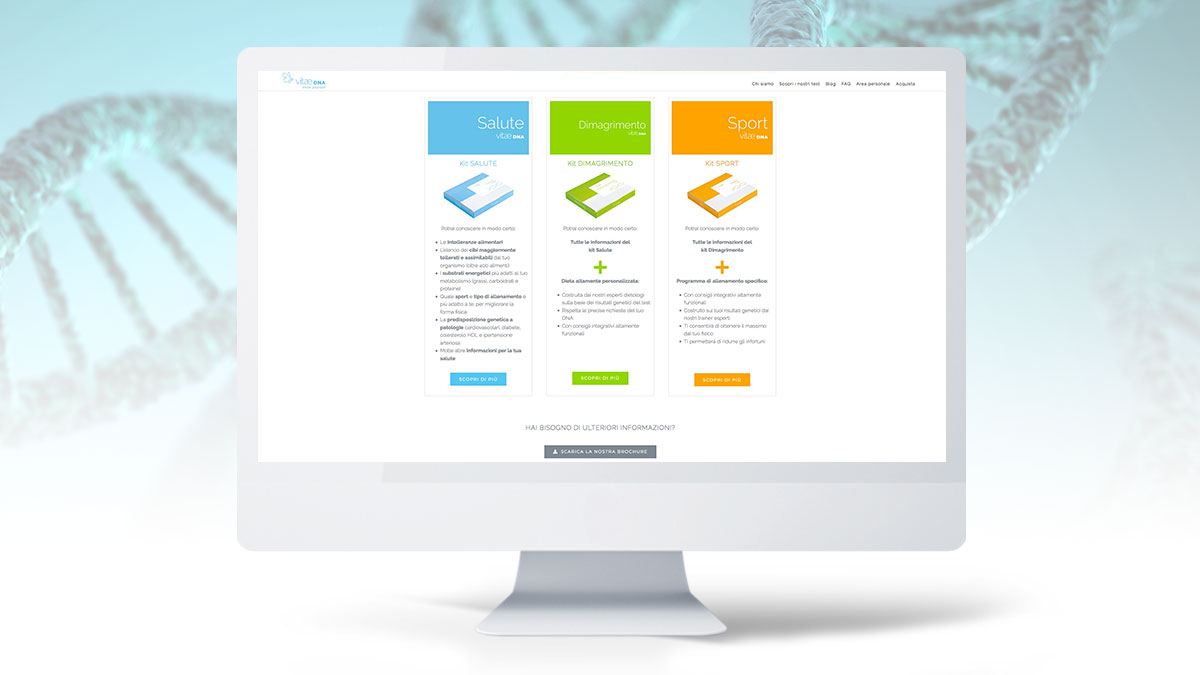 Restyling grafico del sito ecommerce per la vendita di kit per analisi del DNA di VitaeDna.